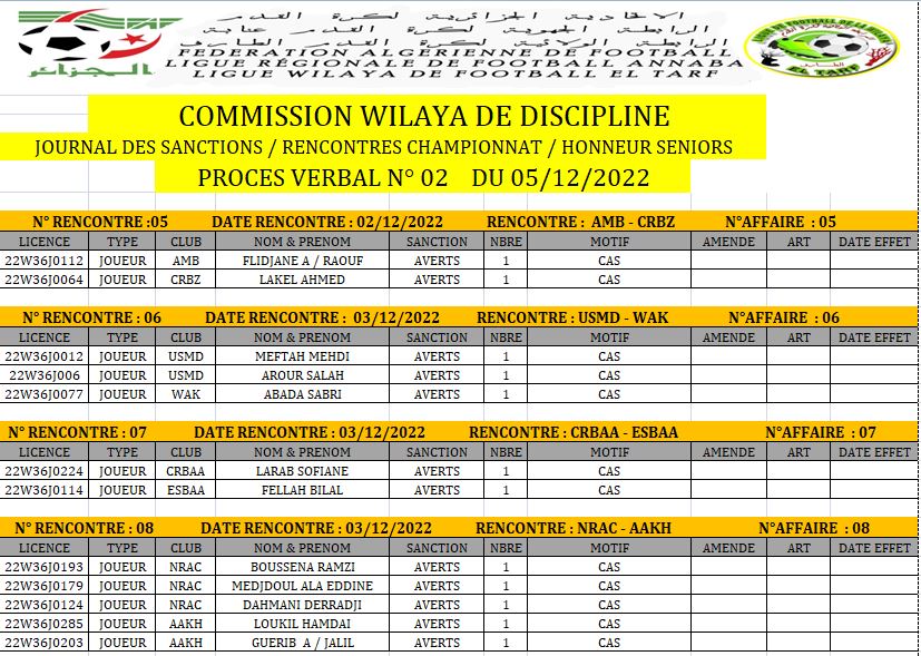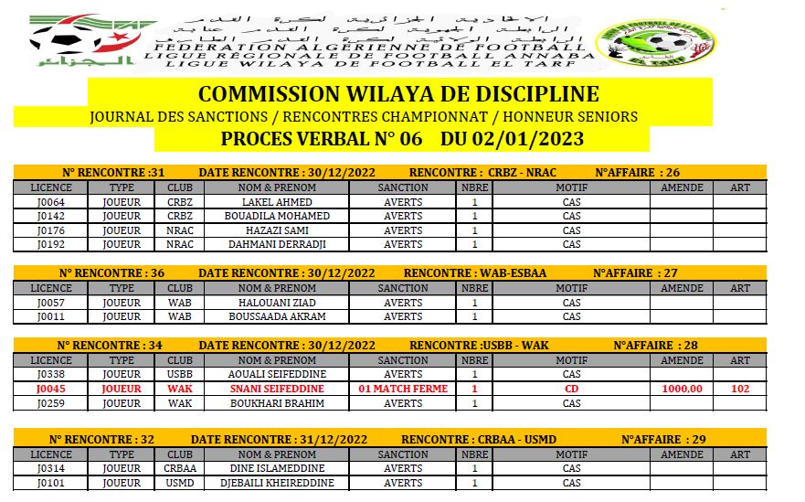 28 septembre 2022 ETAT DES SANCTIONS QUI CHEVAUCHENT SUR LA SAISON : 2022/2023 SOUS TOUTES RESERVES TELECHARGER