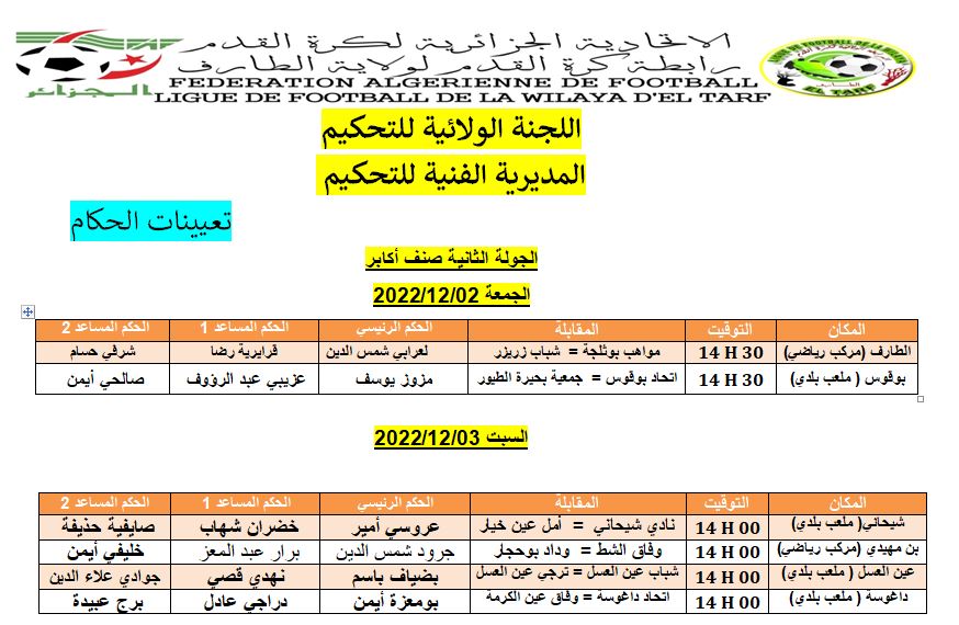 تعيينات الحكام للجولة الثانية صنف أكابر ACTUALITES Arbitrage 1 décembre 2022 تحميل Share on Facebook Share Share on TwitterTweet Share on Google Plus Share Share on Pinterest Share Share on LinkedIn Share Share on Digg Share