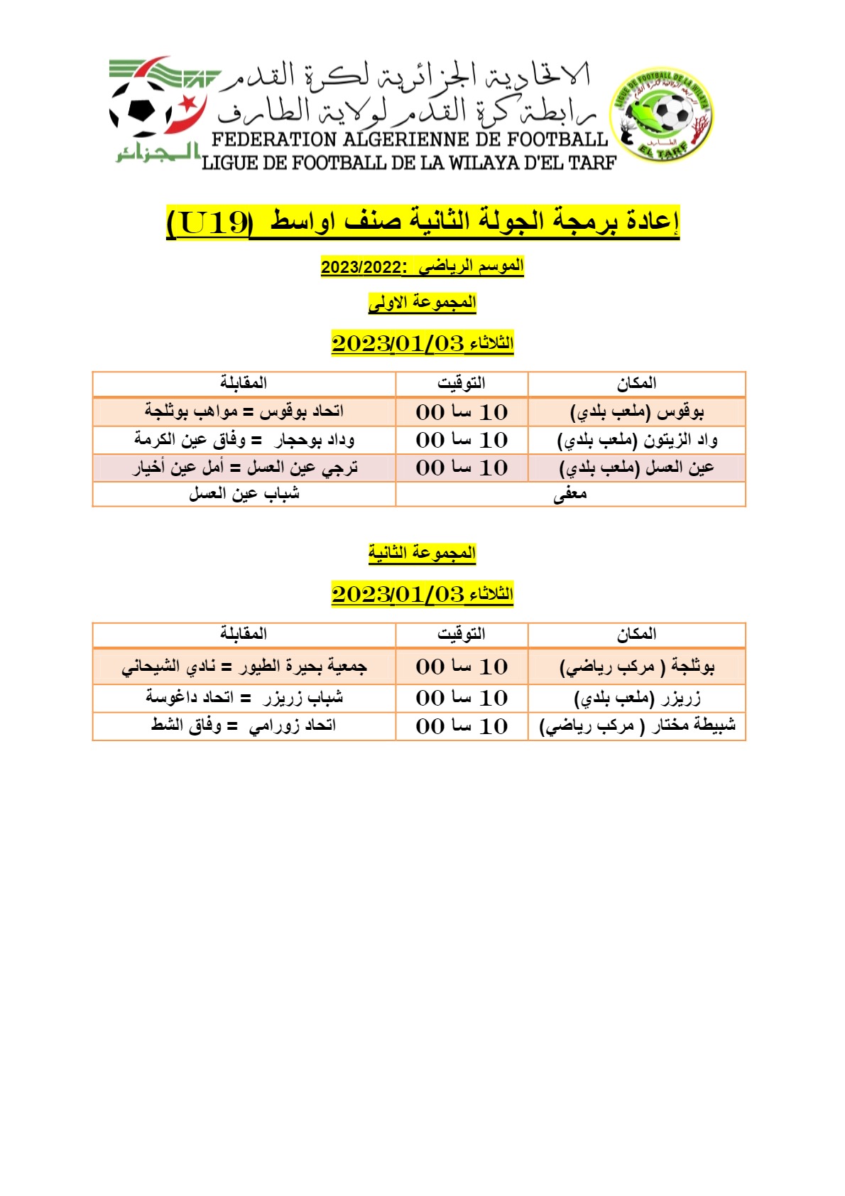 U19 اعادة برمجة الجولة الثانية صنف اواسط ACTUALITES PROGRAMMATION JEUNES 31 décembre 202231 décembre 2022 تحميل Share on Facebook Share Share on TwitterTweet Share on Google Plus Share Share on Pinterest Share Share on LinkedIn Share Share on Digg Share