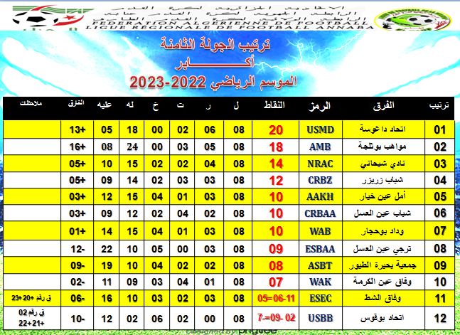 ترتيب الجولة الثامنة صنف أكابر ACTUALITES Compétitions 16 janvier 202317 janvier 2023 تحميل Share on Facebook Share Share on TwitterTweet Share on Google Plus Share Share on Pinterest Share Share on LinkedIn Share Share on Digg Share